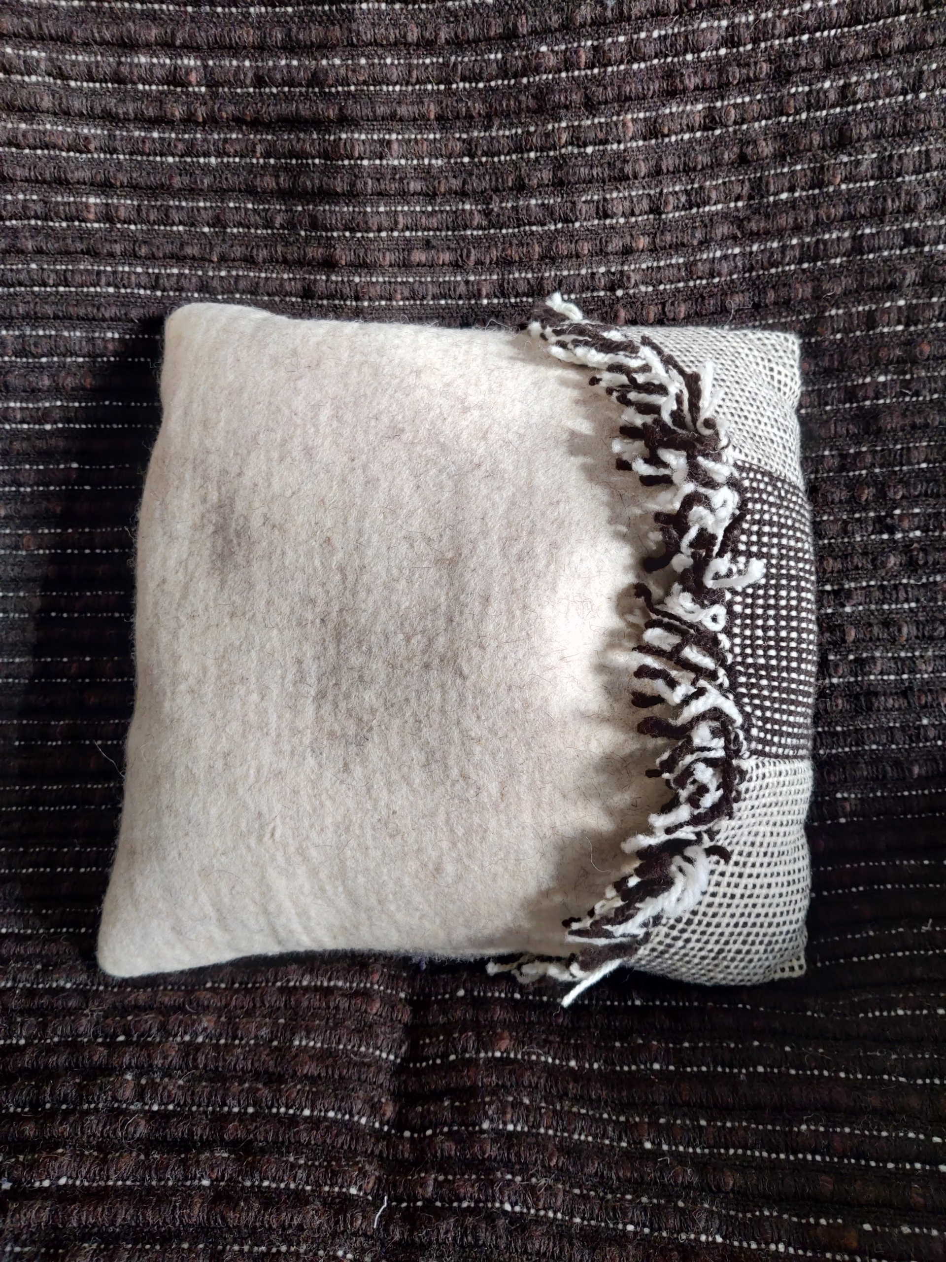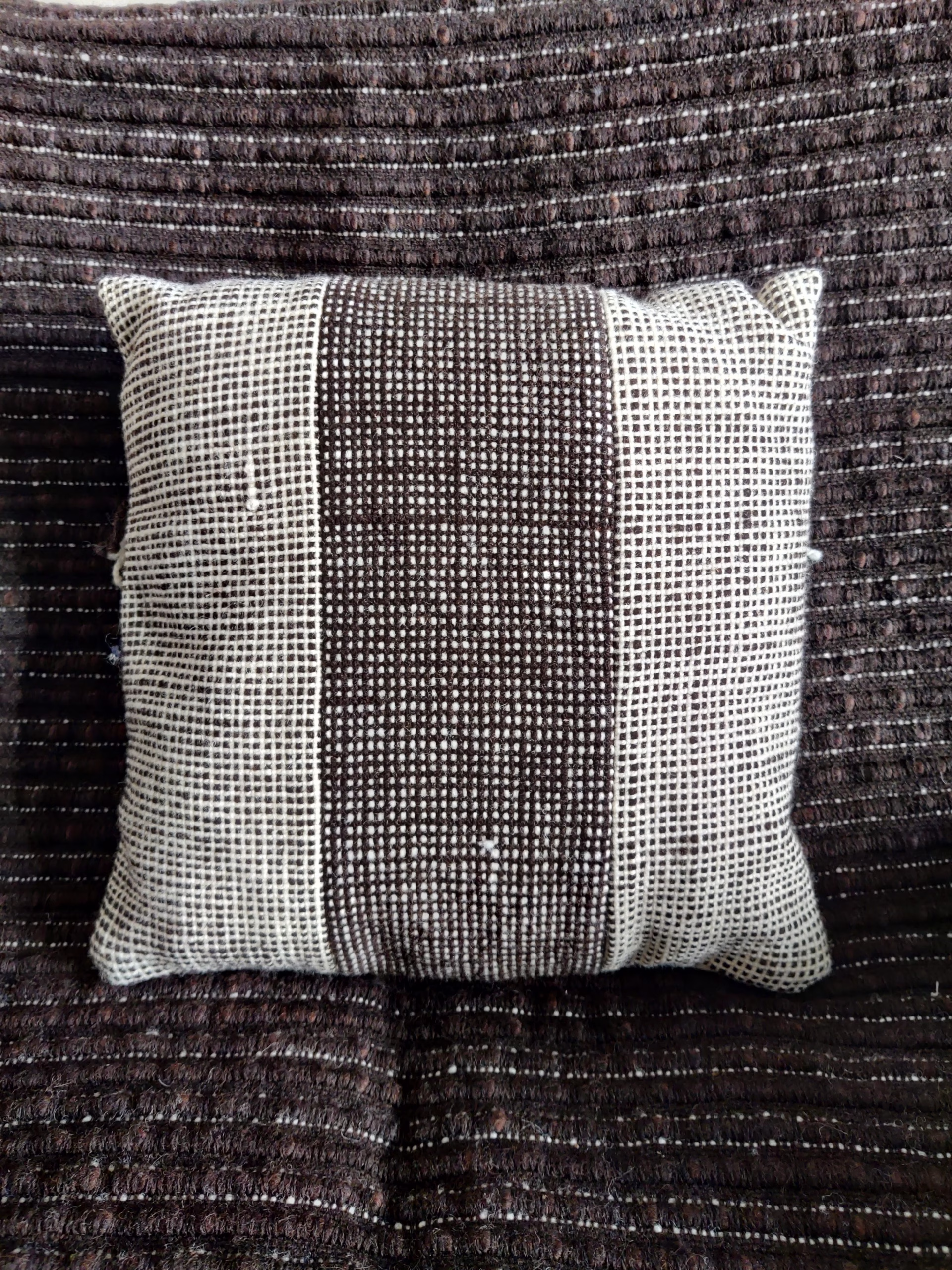 Sergio est un coussin de 34x30cm tissé artisanalement en laine.